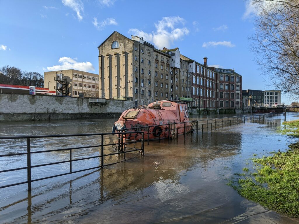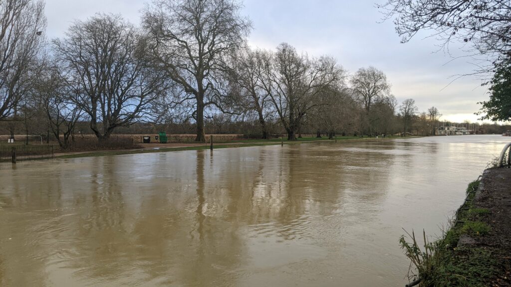 Scot walked the towpath until it vanished beneath opaque water. He stopped where a sign warned of unstable ground, though the warning itself leaned at an angle suggesting long familiarity with instability. He watched the current carry fragments past – twigs, plastic bottles, a child’s football, clumps of foam that held together longer than they should. Another boater joined him, hands deep in coat pockets. “Smell that?” she asked. He nodded. They stood without speaking, listening to the quiet rush that had grown louder over the past week, as if the river had found a new voice and was testing its volume. Further downstream, sirens sounded briefly and then cut off. The waterline reached the bottom of the signpost and kept moving. Neither of them said the word flood. Not yet.
